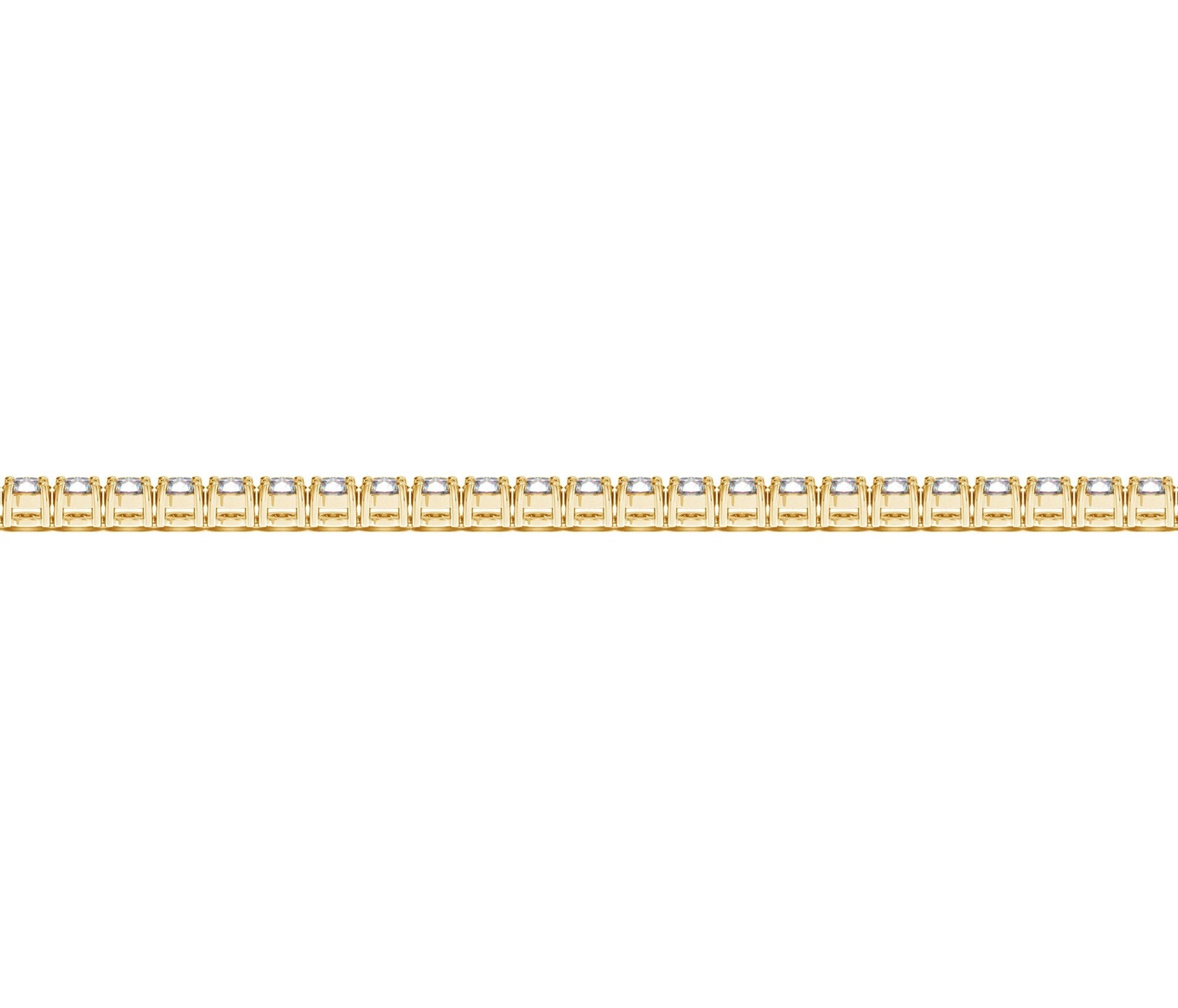Classic four prong 2 carat total weight diamond tennis bracelet showcasing perfectly matched brilliant round cut lab grown diamonds set in 14k yellow gold.