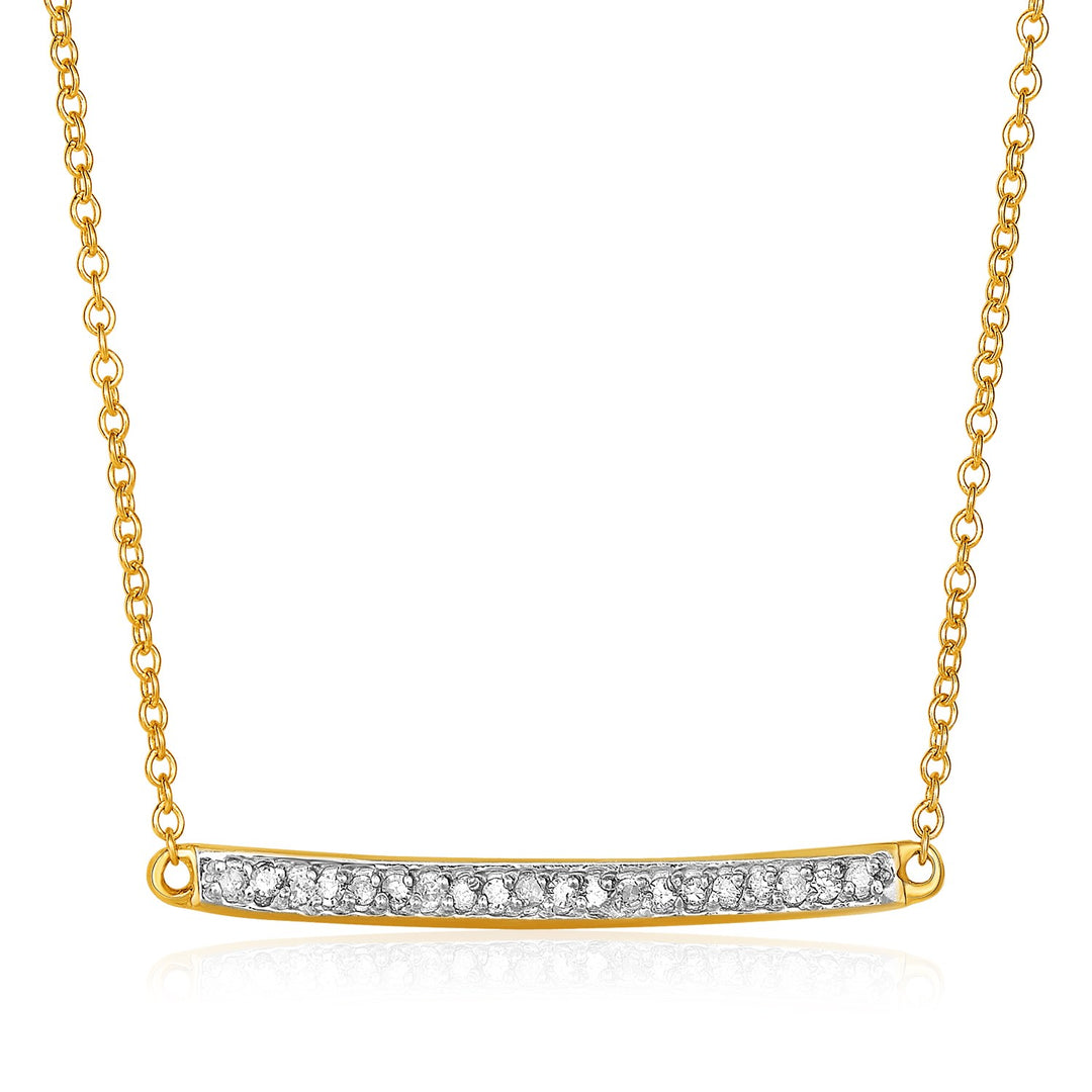 14k Yellow Gold Necklace with Gold and Diamond Bar (1/10 cttw)