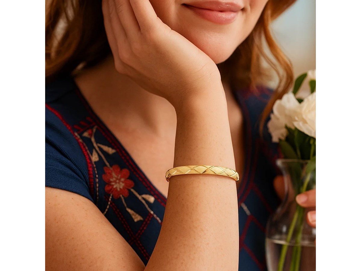 10k Yellow Gold Slender Diamond Pattern Textured Bangle (6.00 mm)