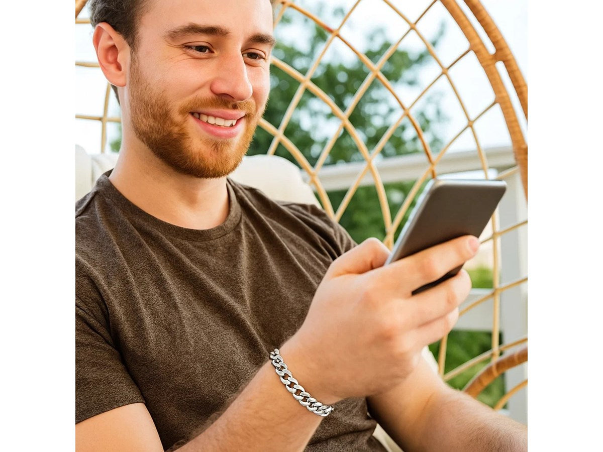 This Miami cuban semi solid bracelet comes in 14k white gold and has a width of 7.00 millimeters. Secured with a lobster clasp.