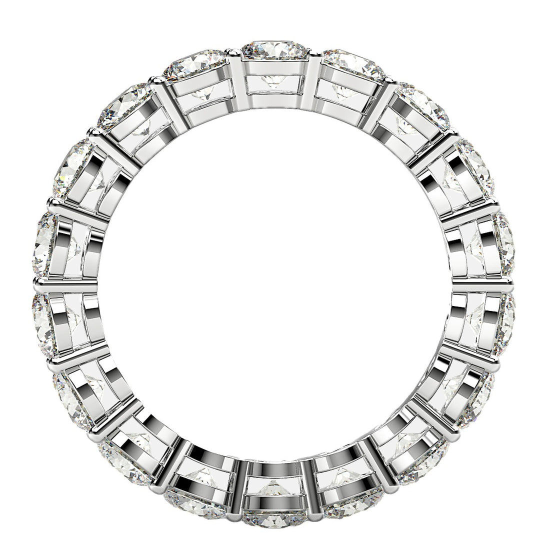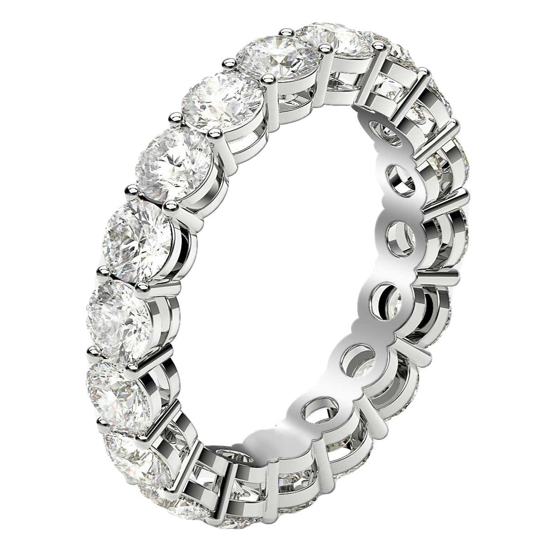 This timeless common prong eternity ring set in 14k white gold features the sparkle of brilliant round cut lab grown diamonds, while open gallery sides allow additional views of the stones.